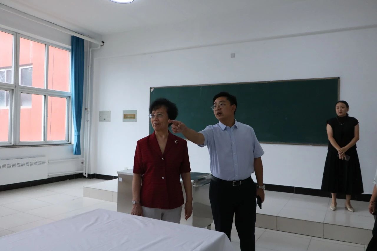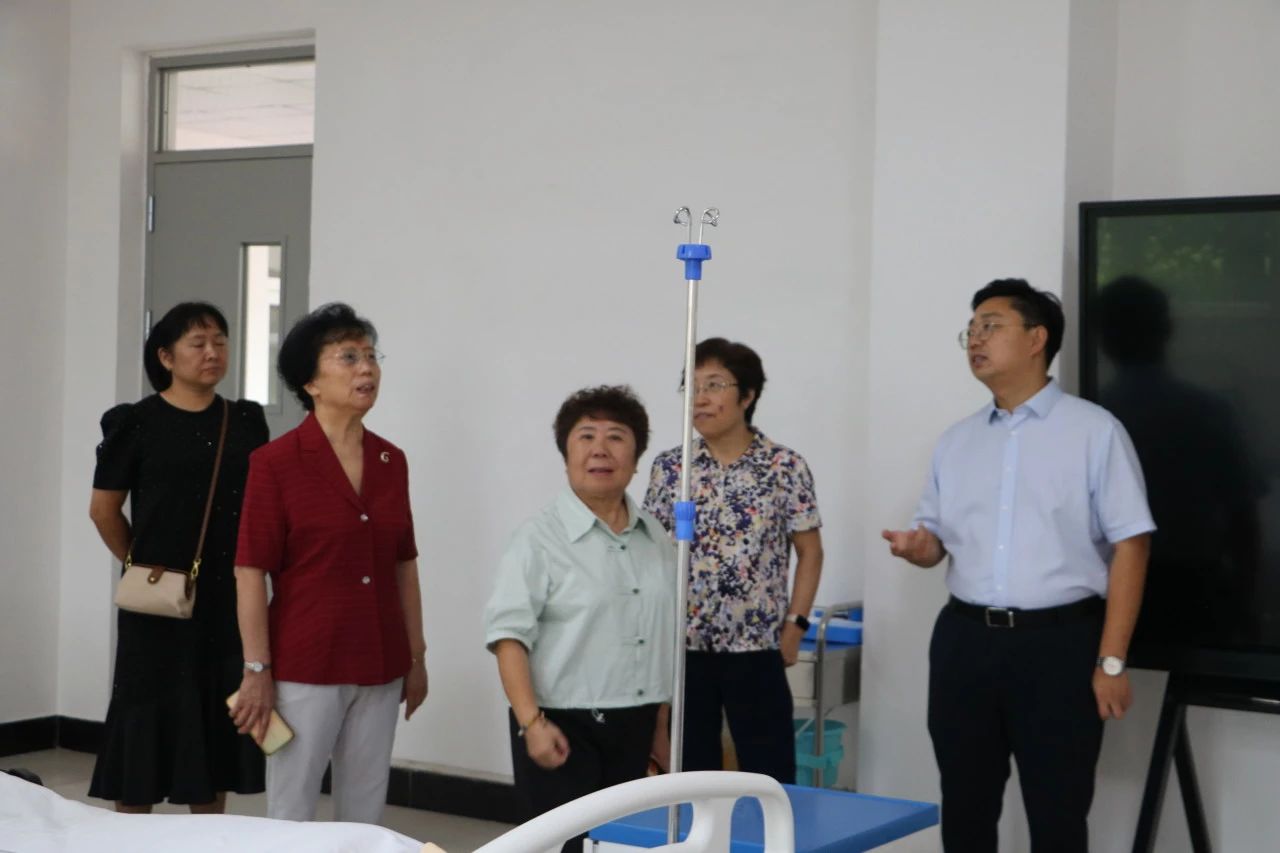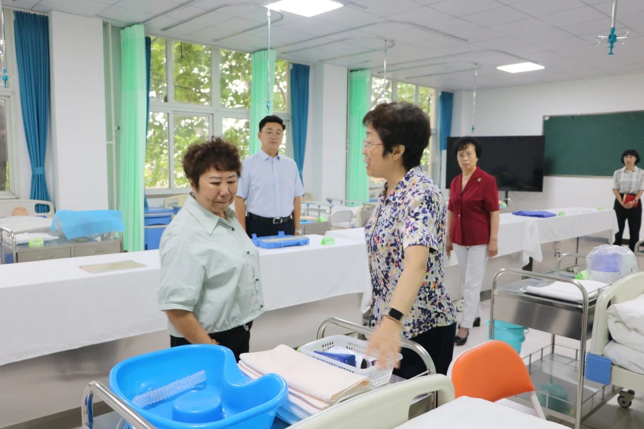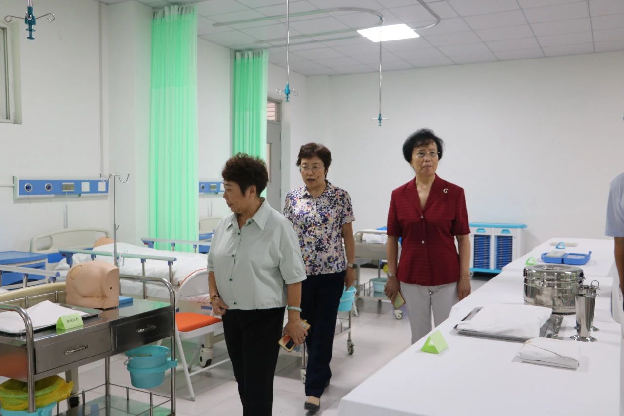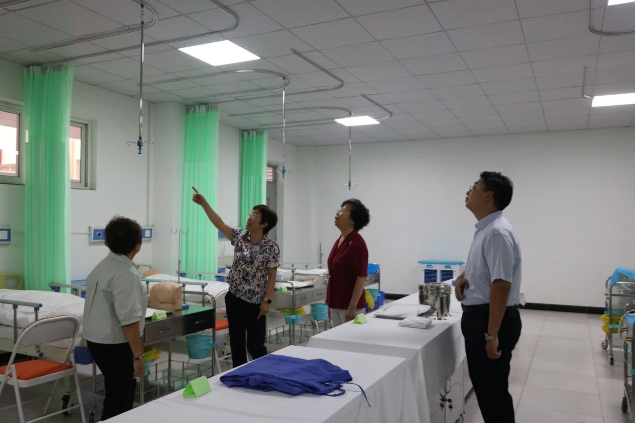 张桂云主任与马谊平书记密切关注学院的专业建设及人才培养,实地查看了教学楼、办公楼等区域,重点关注了学院新建护理实训室、一站式服务大厅等。