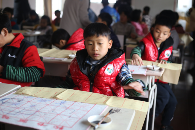 他们认真地写,自信的写,不被旁人的吵闹声所打扰,专注于自己的书法练习。看到孩子们比以往更热爱书法,能够通过书法获得快乐,大家都很高兴为小朋友们服务。