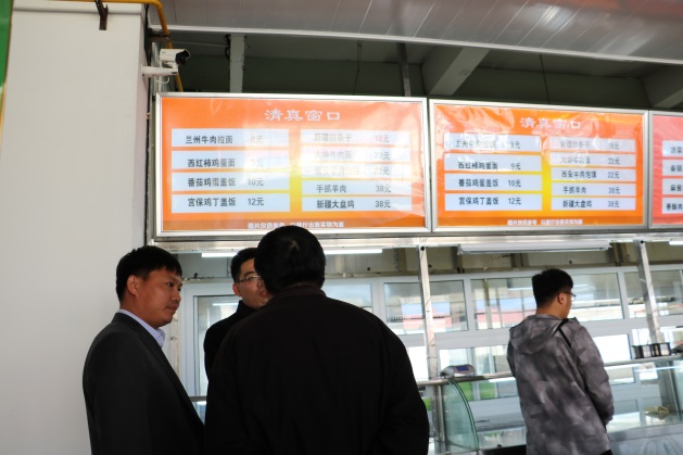 中午,院领导又集体到食堂检查,由食堂经理陪同对饭菜质量、价格,食品安全、卫生及清真窗口的设置进行了询问了解。同时,也随机走访了几名正在就餐的学生,询问了下他们对食堂的意见。