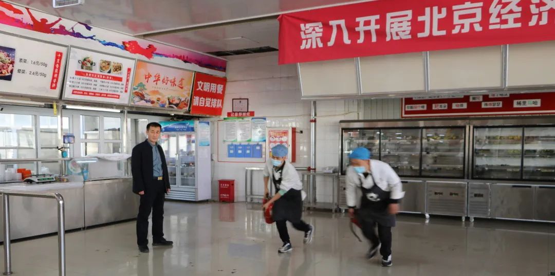 安全处副处长翟玉军首先通报了全国近期发生的几次典型消防安全事故,就校园食堂商超容易出现的安全隐患进行了分析,强调了食堂商超从业人员属于重点岗位人员,应当掌握防火、灭火、应急疏散逃生常识,明确安全生产实行 “三管三必须”,即管行业必须管安全、管业务必须管安全、管生产经营必须管安全。他要求食堂商超从业人员要将消防安全牢记心中,学习消防安全知识,做到“四懂四会”;要做好日常检查,设置安全员,做好应急准备。随后对食堂商超从业人员从灭火器、灭火毯、消防栓的使用方法以及油锅灭火等方面进行了实操培训。