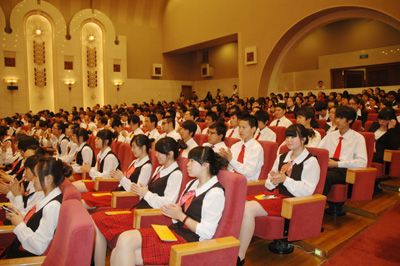 本网讯 5月26日,我院组织第九期党校学员、优秀共青团干部、优秀共青团员代表,青年教师代表和旅游管理系全体师生,共计200余人赴人民大会堂参加红色动画片《西柏坡》首映式。