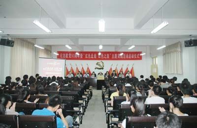 本网讯 2011 年6月28日,bat365在线中国登录入口举行纪念建党90周年暨“红色北经 红色之旅”主题实践活动启动仪式。外企集团和平国旅党委书记杨建华,党总支副书记谢宝春,学院董事会董事兼旅游学院院长赵李葳,外企培训中心副总经理杨向 真,外企集团职业学校副校长甘起华,外企培训中心销售主管张秀云,学院教务处长何慕增,学生处长吴成立等领导同志出席了活动启动仪式,活动仪式由团委书记 姬世祥主持。