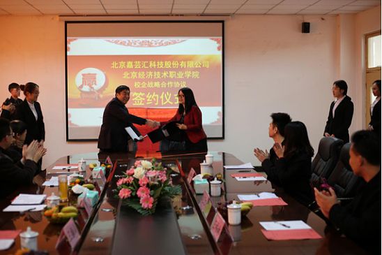 九时三十分,签约仪式开始,李润坤助理致欢迎辞,并介绍北京嘉芸汇科技股份有限公司基本情况:该公司于2013年12月2日在北京成立,2016年8月新三板挂牌上市,主要从事互联网+财税的业务,公司主要产品有企业服务平台嘉芸汇、芸豆会计和嘉园区。