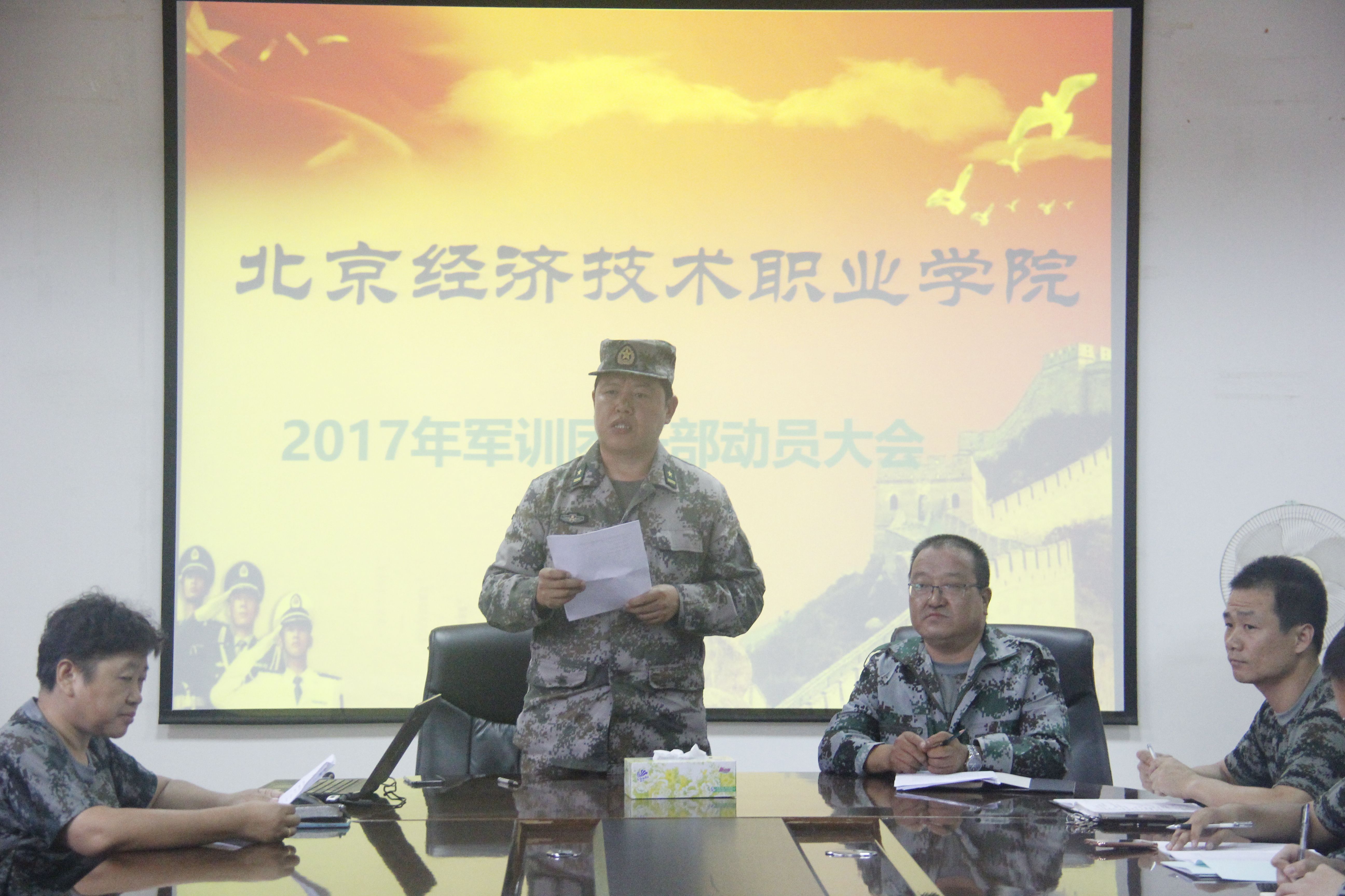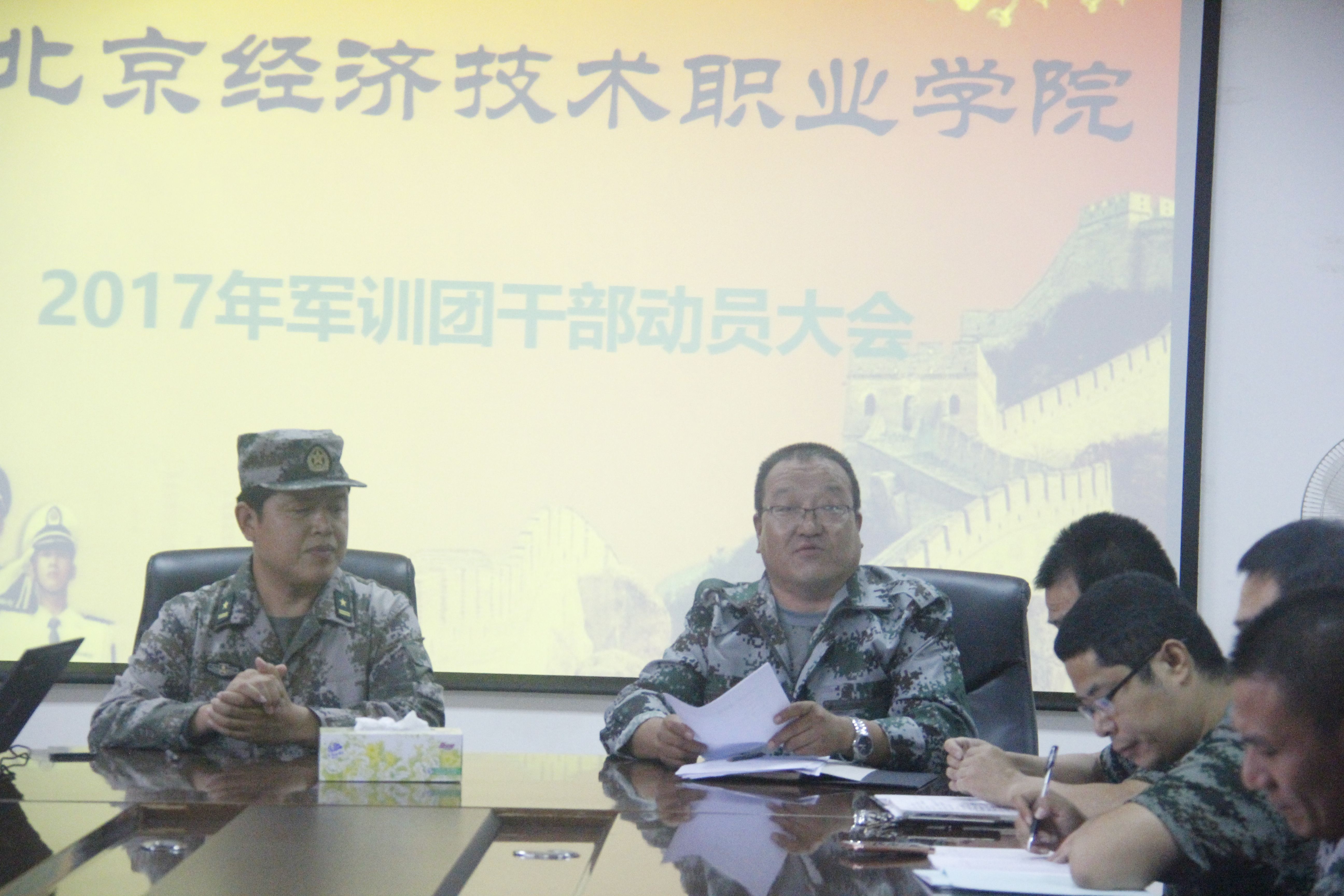 8月26日,bat365在线中国登录入口2017年军训团干部动员大会在小会议室召开。军训团团长李保华,政委张国强,参谋长王振山,副参谋长索桂芝,政治部主任李冬雪,副主任胡静微出席会议,军训团各营营长、教导员、指导员、全体承训官兵参会。会议由索桂芝主持。