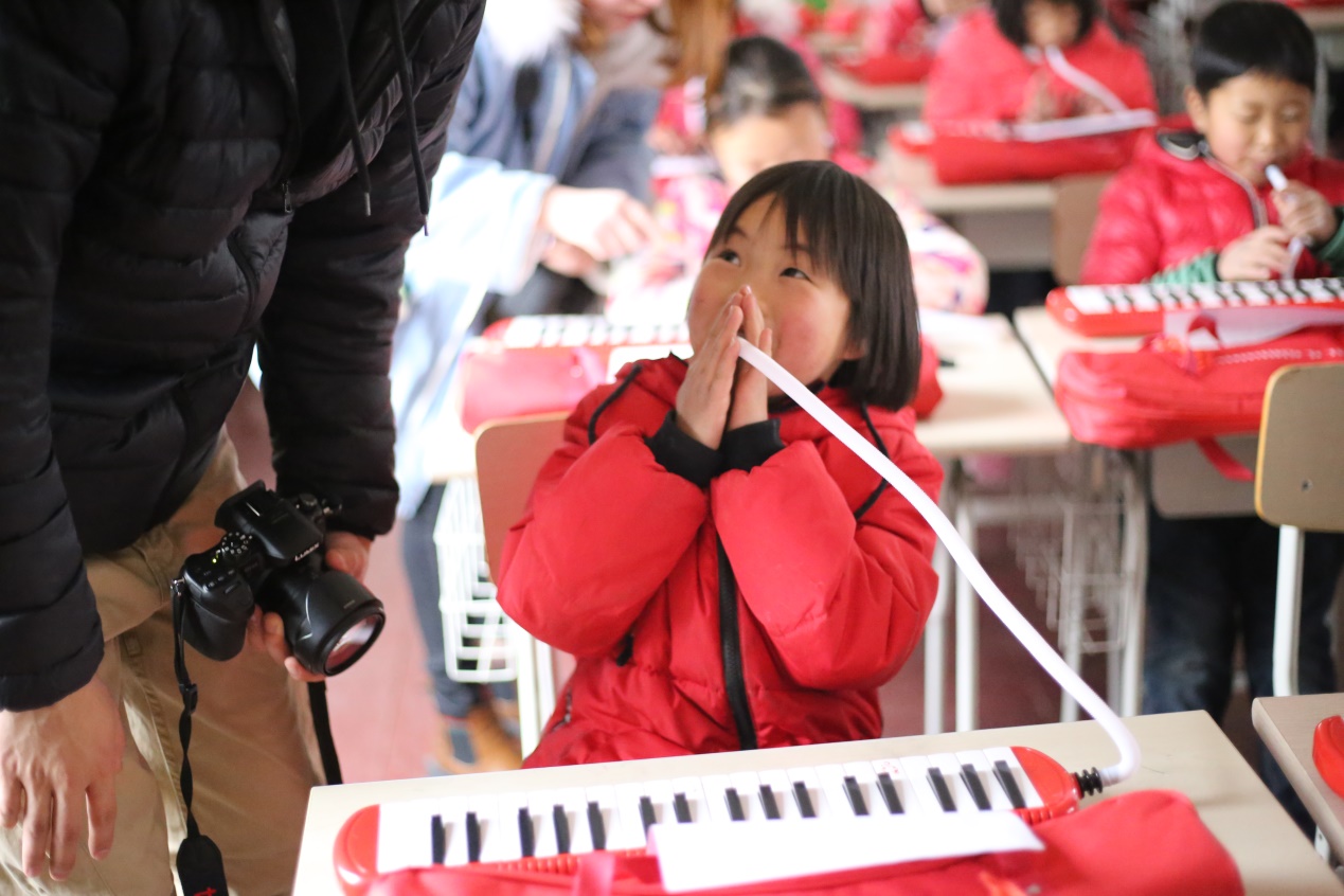 活动当天,三位老师和志愿者们早早做好准备。到达太阳村后,同学们正在整理队伍准备上课。第一周活动是教授孩子们口风琴。教授口风琴的专家教师是翟羽佳老师。