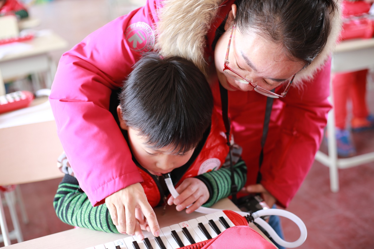首先,由翟羽佳老师带着一班的孩子们复习上节课学过的口风琴。每一个孩子都复习的特别认真。