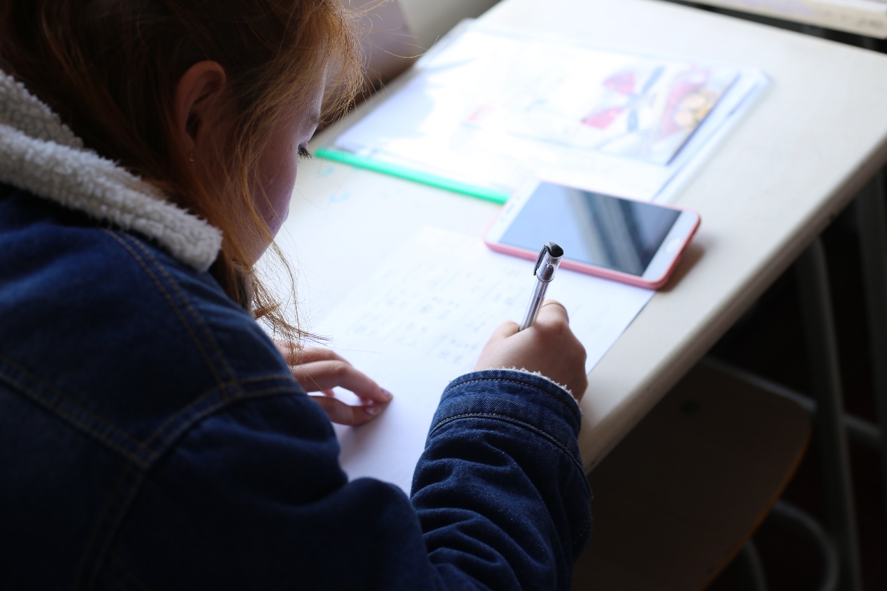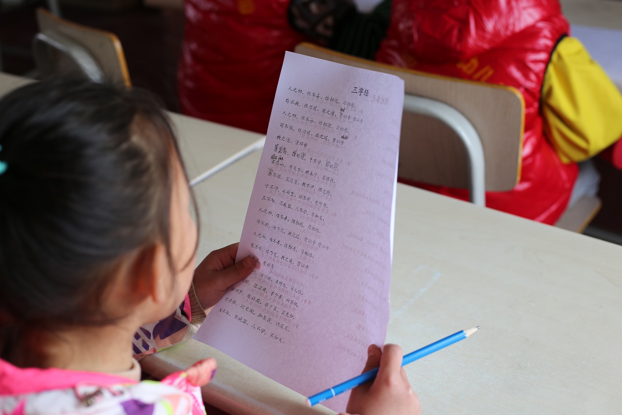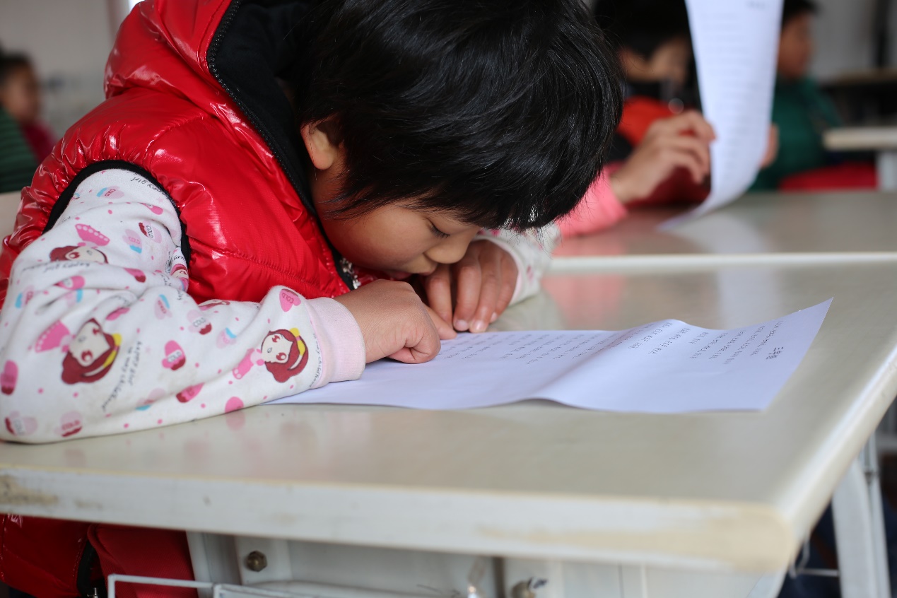有几个孩子把上次发的谱子丢了,认真的志愿者便手抄一份供孩子们学习。
