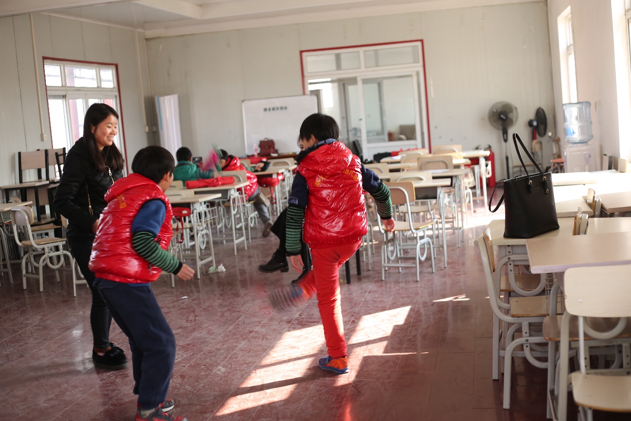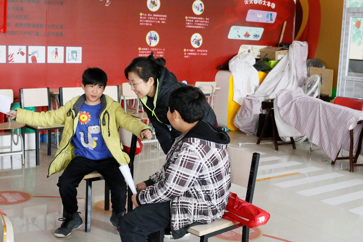 有一个孩子不喜欢上课,爱耍小脾气,就喜欢一个人待着。有责任心的志愿者一直在耐心地和他聊天,试图通过拥抱减少距离感,慢慢走入他的内心。功夫不负有心人,在志愿者的陪伴下,孩子终于主动走进了教室。