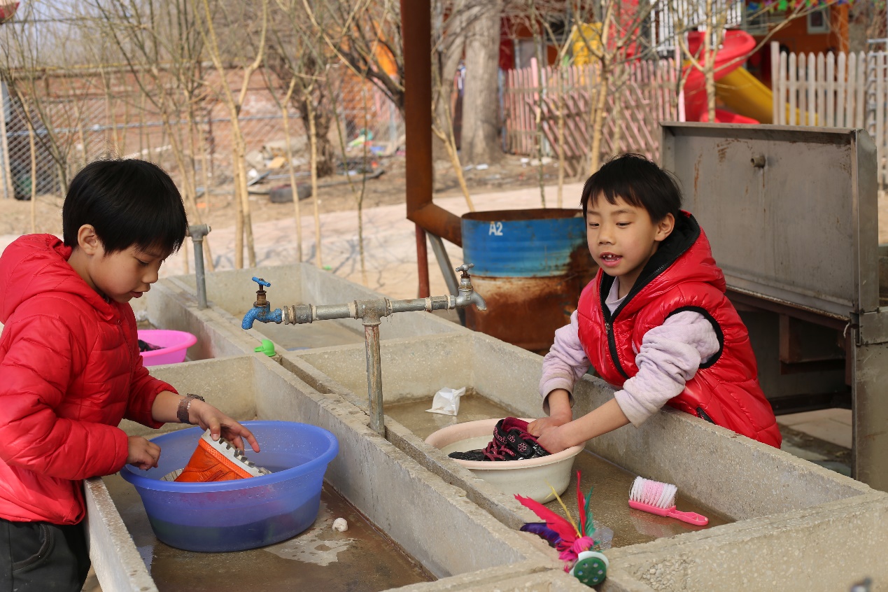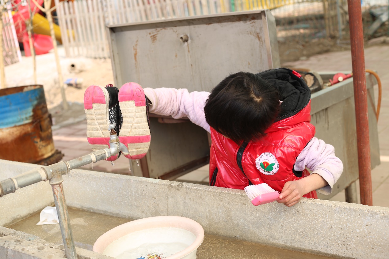 在我们要走的时候,抓拍到了孩子自己刷鞋的瞬间,他们那么小,但却充满了快乐,俨然一副小大人的模样。