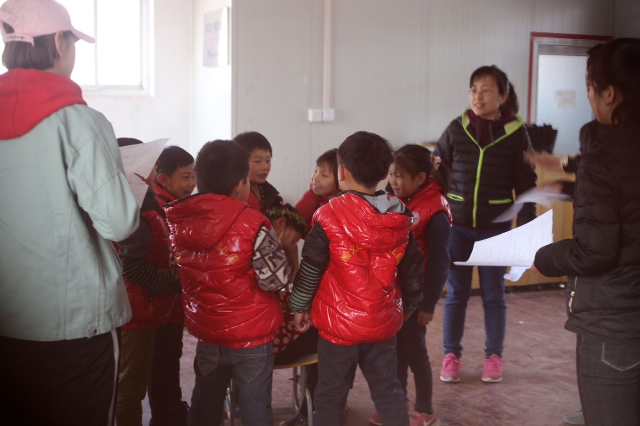 孩子们很快进入了状态,非常认真的排练着自己的角色。