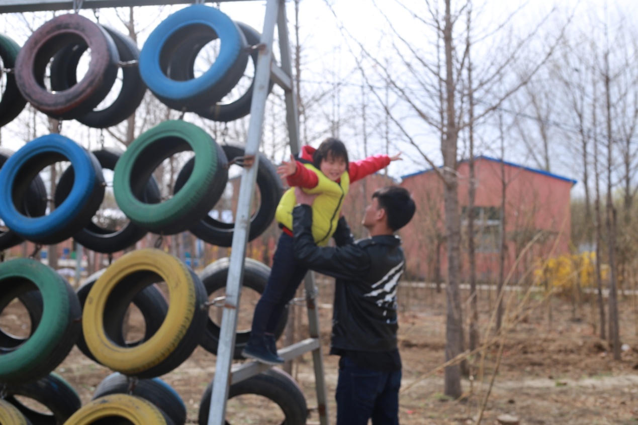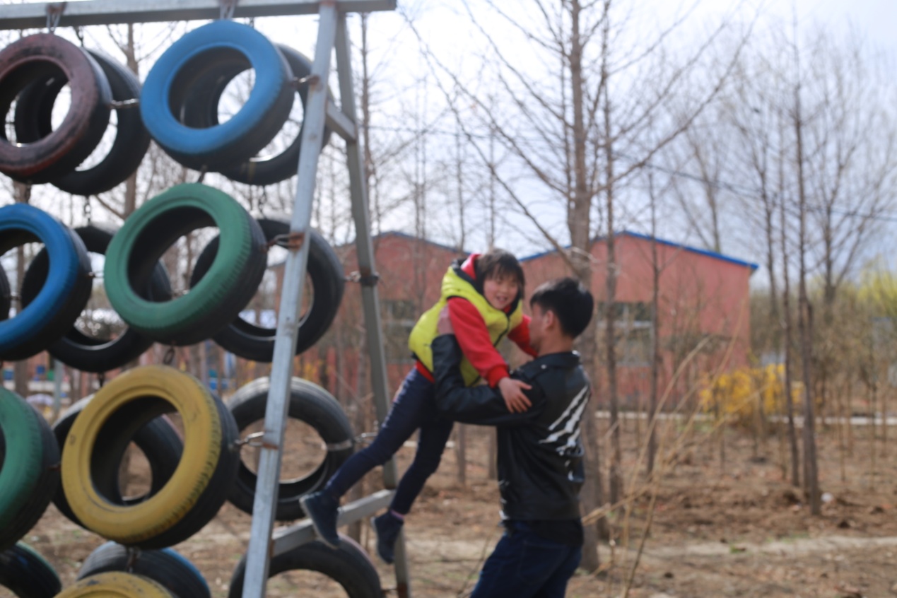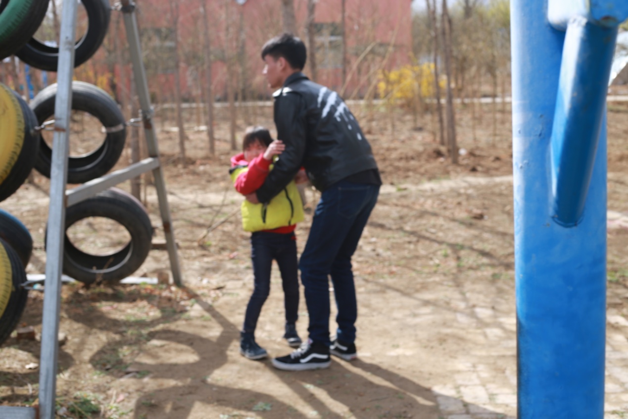 孩子们跟志愿者打成一片,不亦乐乎。