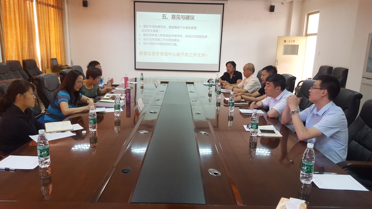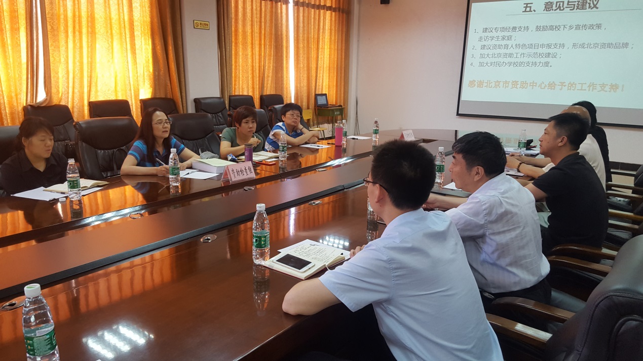 检查组组长、北京市资助事务管理中心副主任张梅传达了此次工作检查的基本精神和主要内容,她指出,检查既是对学校规范做好学生资助工作的督促,也希望听取一些好的经验和做法,收集实际工作中遇到的一些问题和意见。