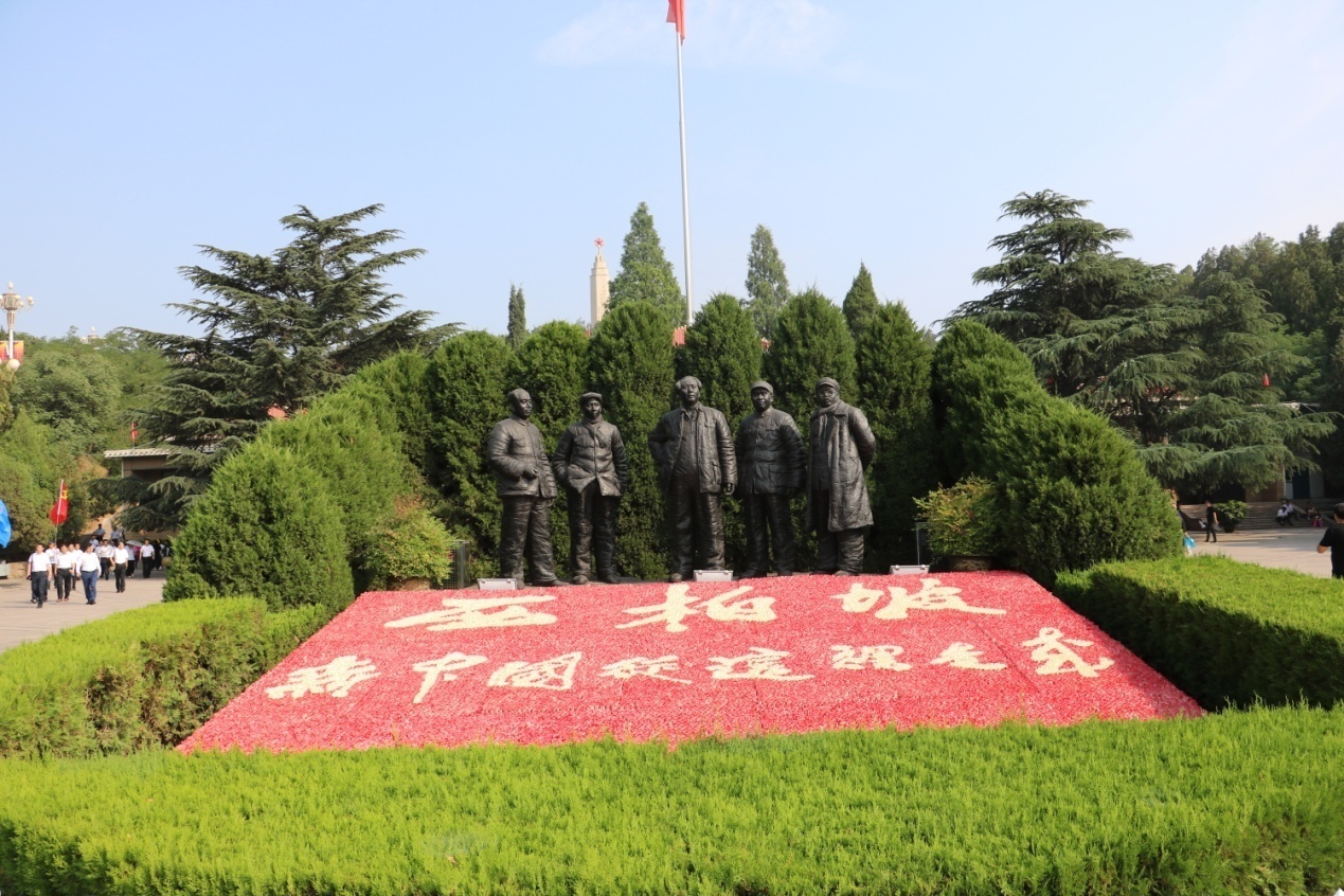 6月23日早8时30分,大家来到西柏坡陈列馆广场五位领导人铜铸像前,向五大书记塑像敬献花篮,深切缅怀老一辈无产阶级革命家的家的丰功伟绩。